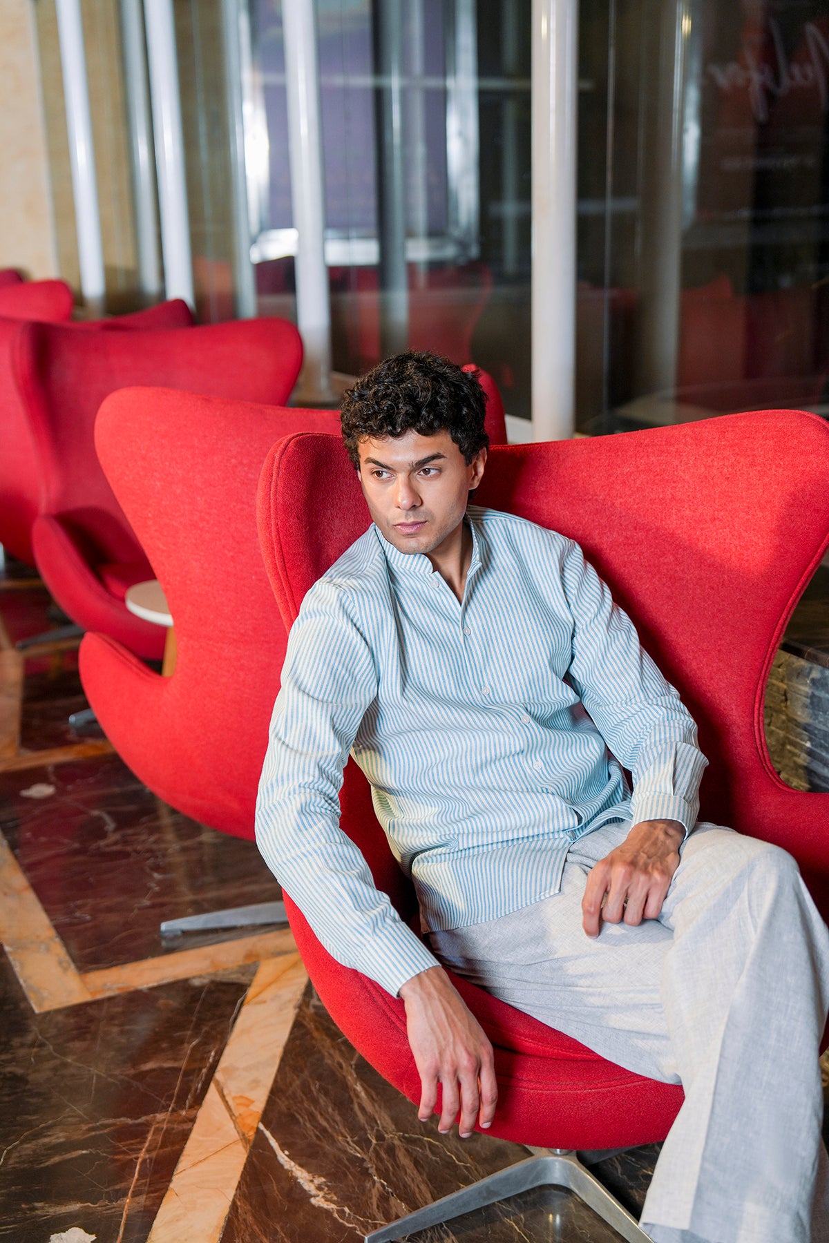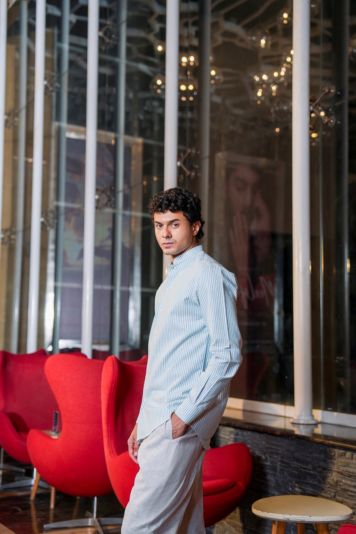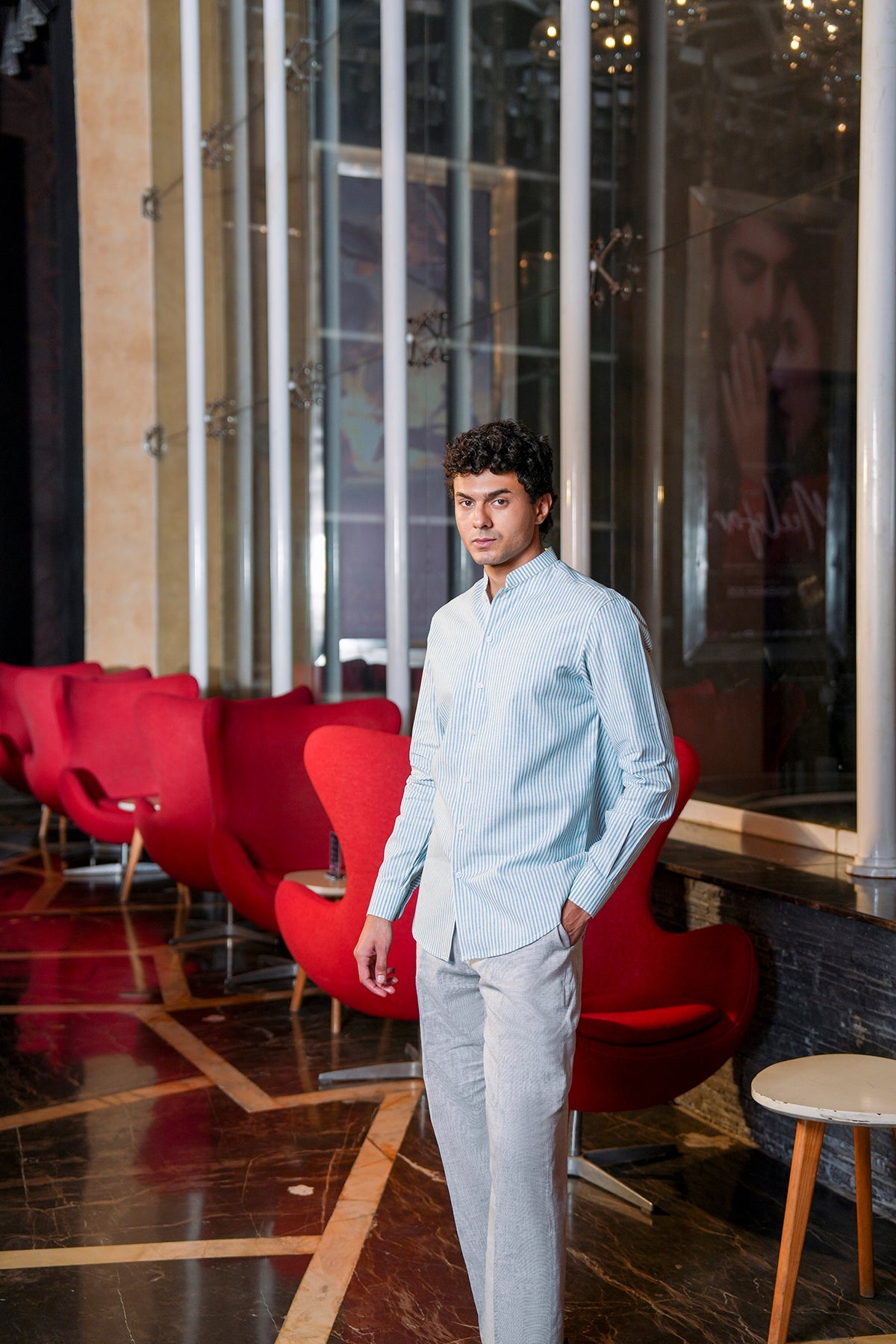 Stay cool and stylish with this cotton-linen striped shirt, crafted from a soft, breathable blend perfect for all-day comfort. The sleek Mandarin collar adds a modern, sophisticated touch to the classic stripe pattern, making it ideal for casual outings, office wear, or weekend gatherings. Lightweight and versatile, it effortlessly combines contemporary style with timeless design.