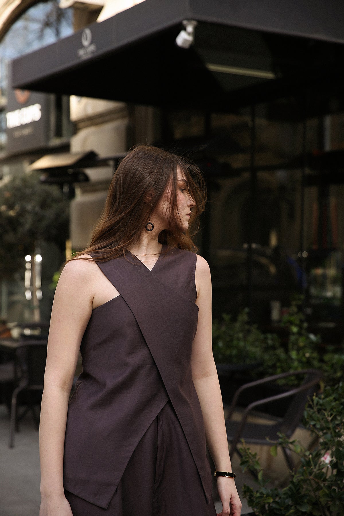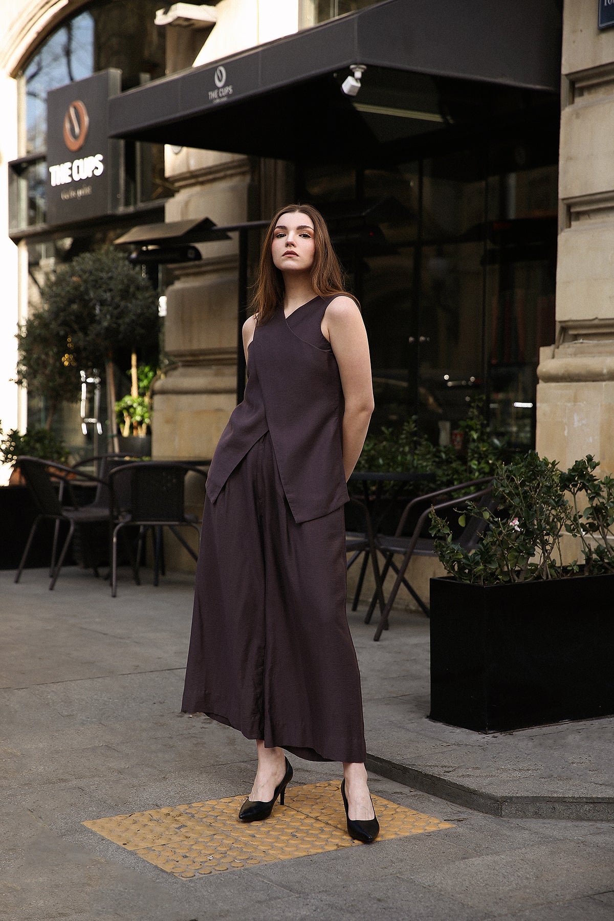 Redefine modern tailoring with our Asymmetric Tunic Set. Crafted for the woman who demands both comfort and commanding style, this two-piece ensemble features a deep espresso hue that serves as a softer, more contemporary alternative to classic black.