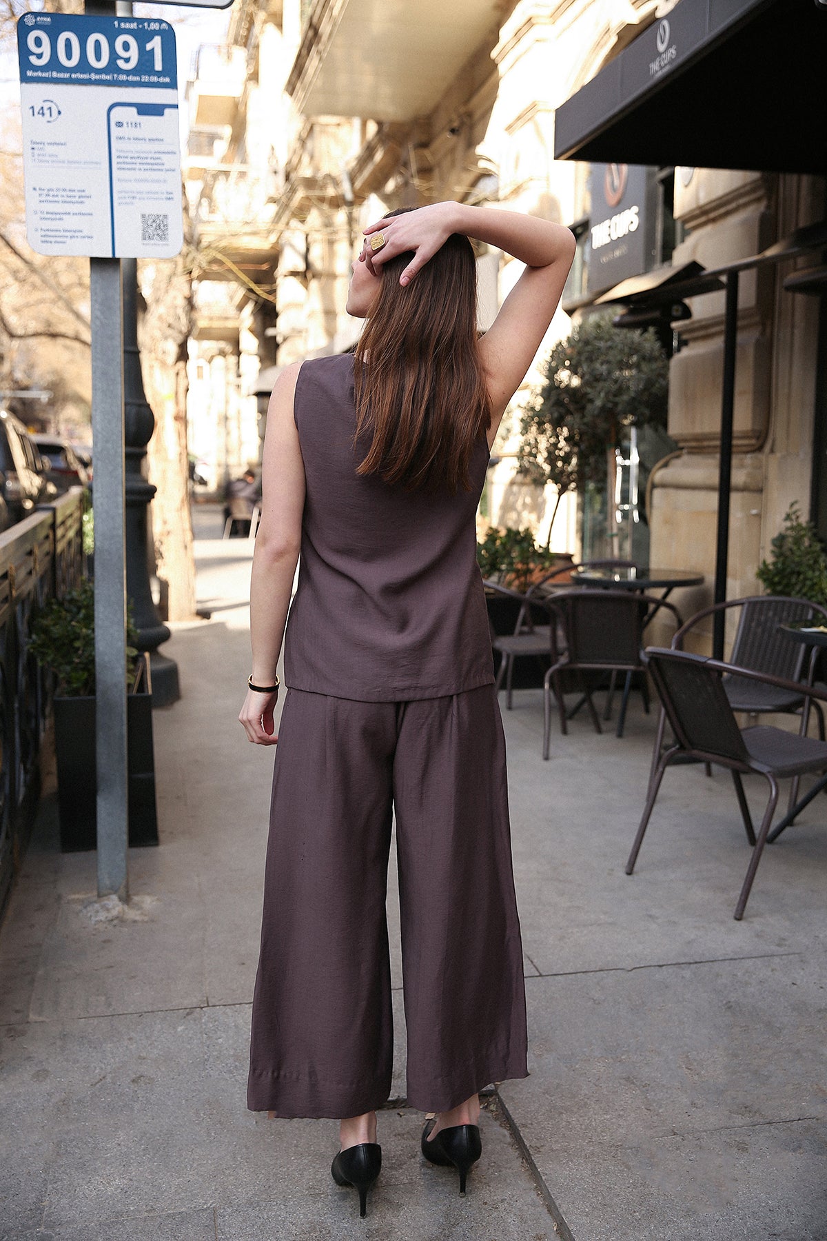 The Sculpted Asymmetric Tunic & Wide-Leg Trouser Set Redefine modern tailoring with our Asymmetric Tunic Set. Crafted for the woman who demands both comfort and commanding style, this two-piece ensemble features a deep espresso hue that serves as a softer, more contemporary alternative to classic...