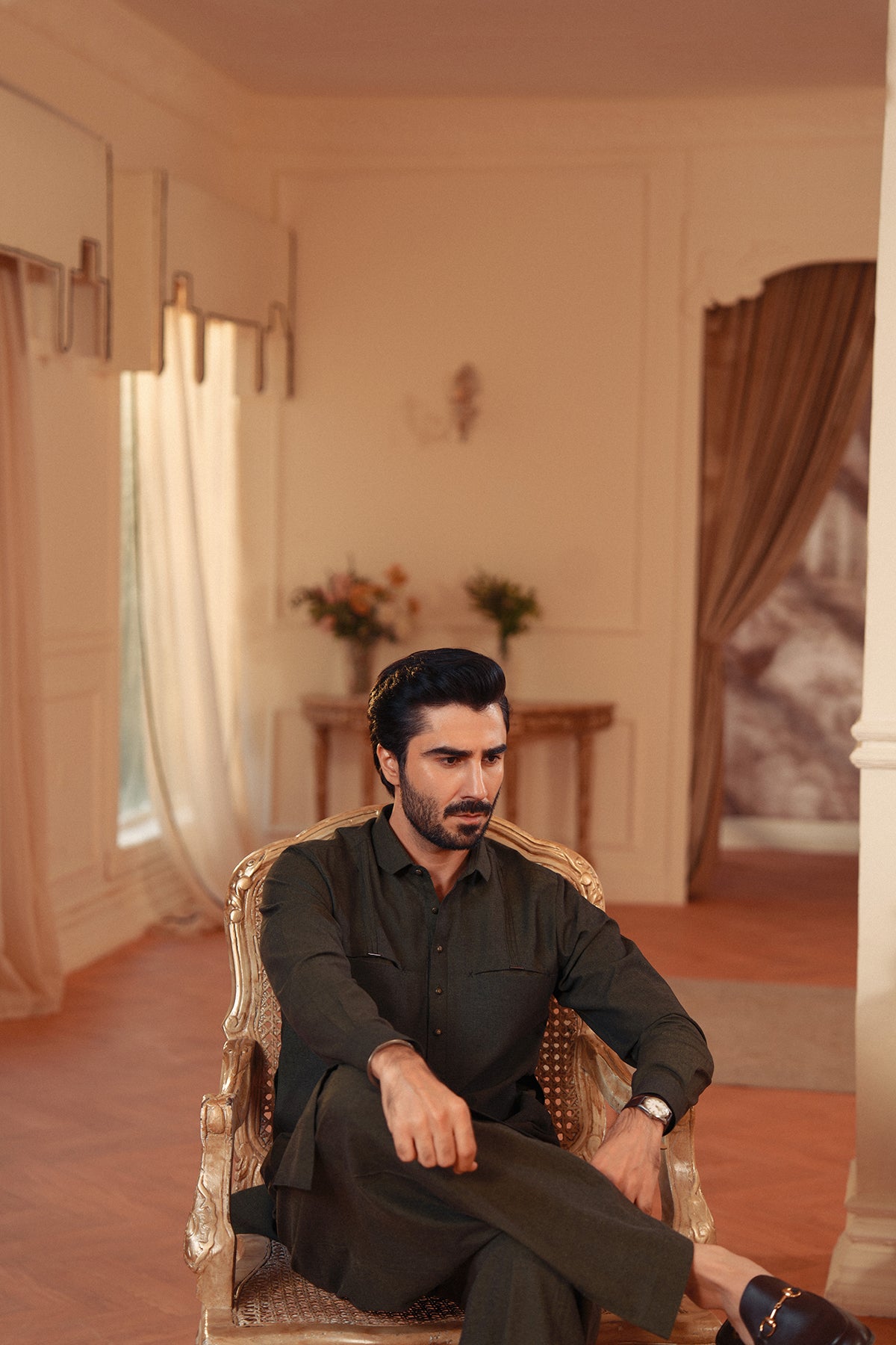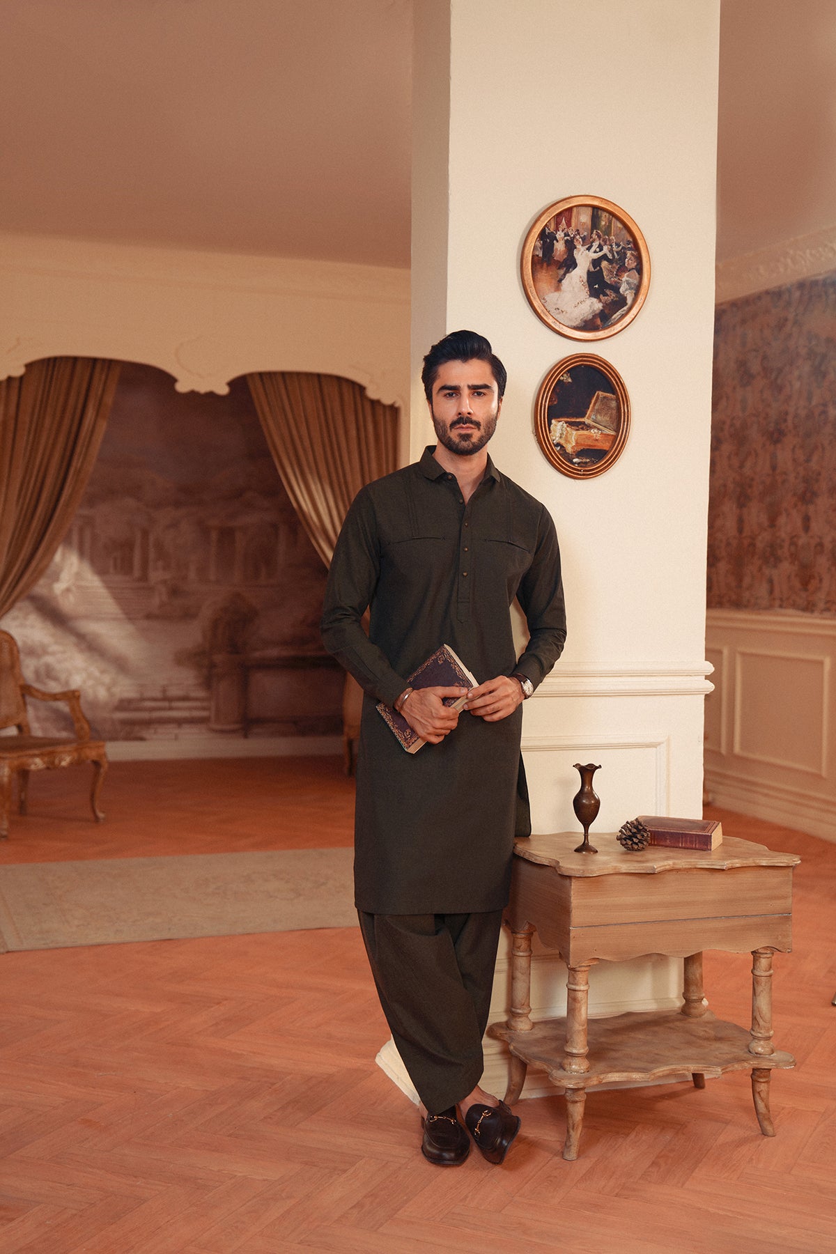 Tailored from a yarn-dyed soft finish fabric, this kurta defines modern refinement with subtle craftsmanship. The design features fine pin-tuck detailing running from the chest to the pocket, creating a textured, structured appearance. A double-panel chest pocket with metal button accents adds both utility and sophistication, while the sleek collar design completes the look with a clean, modern edge.