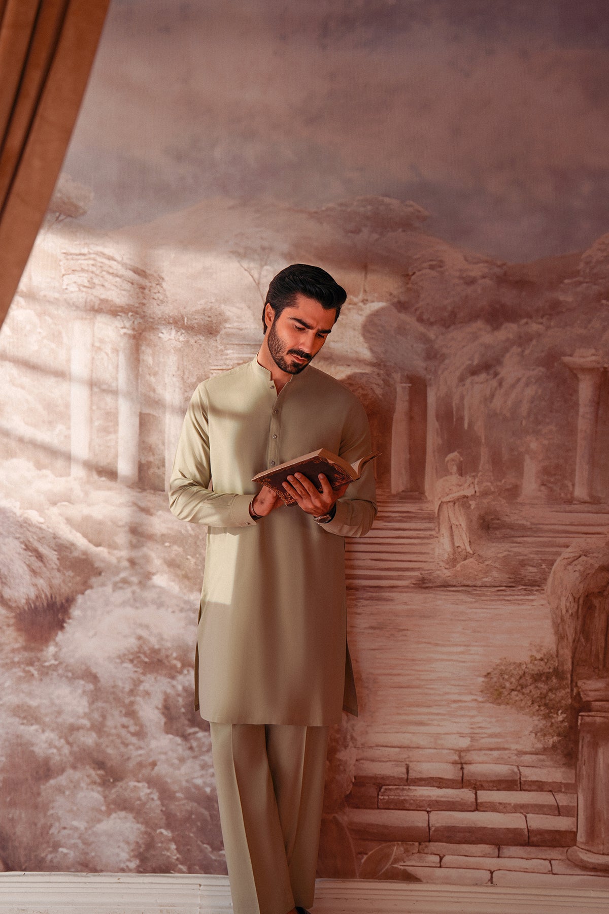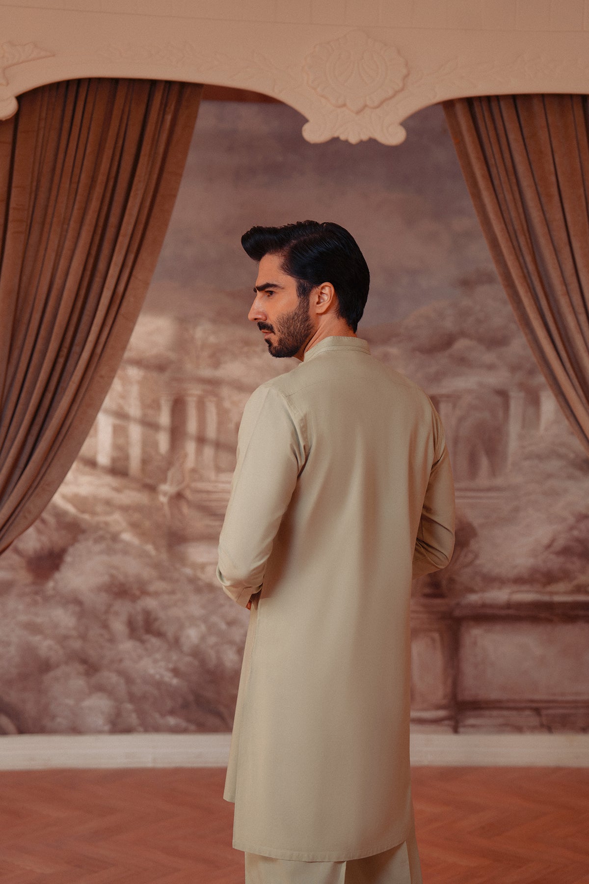 Oxford Weave Kurta Trouser with Cut & Sew Detailing