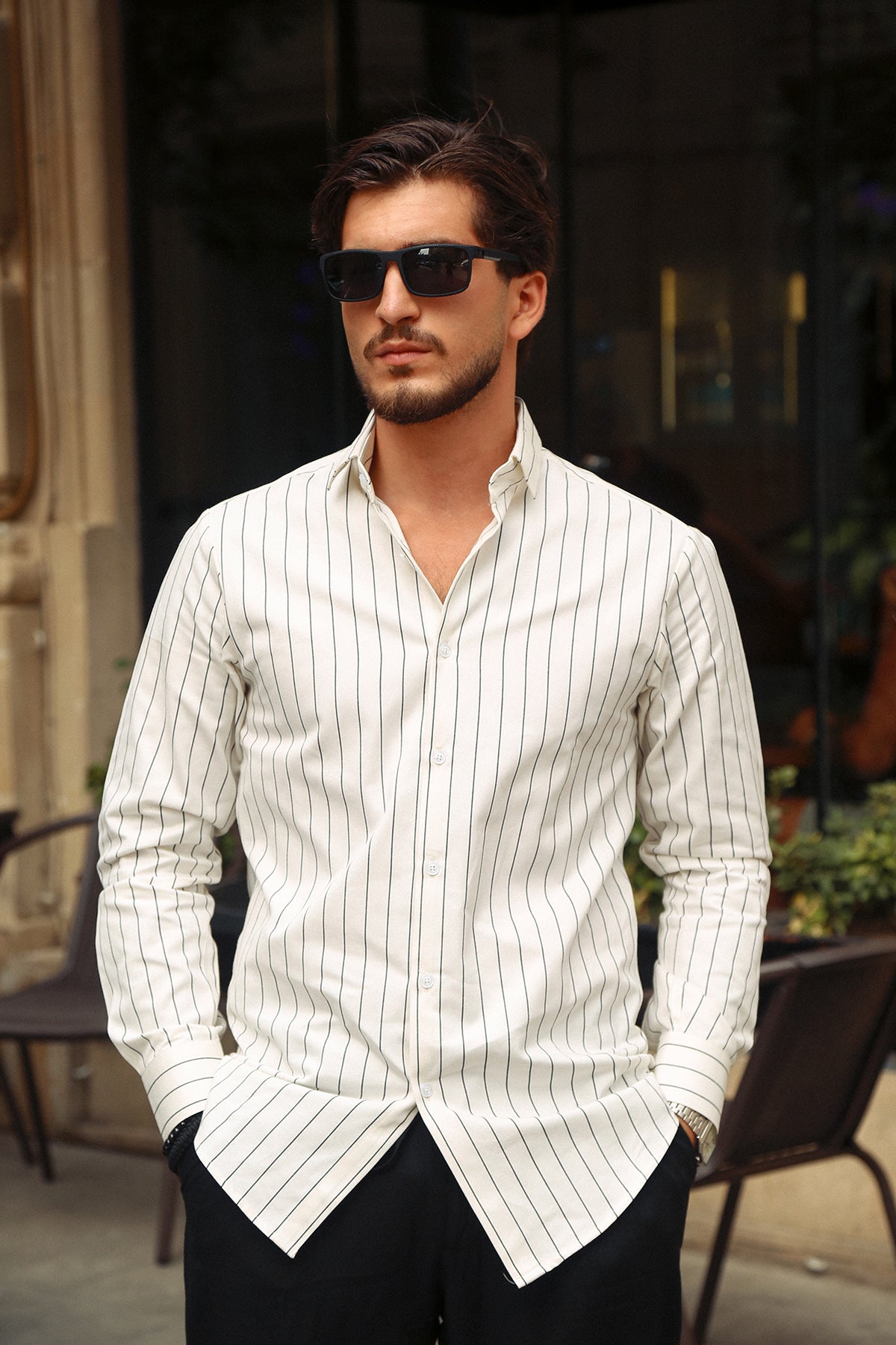 Slim Fit pin strip White Shirt