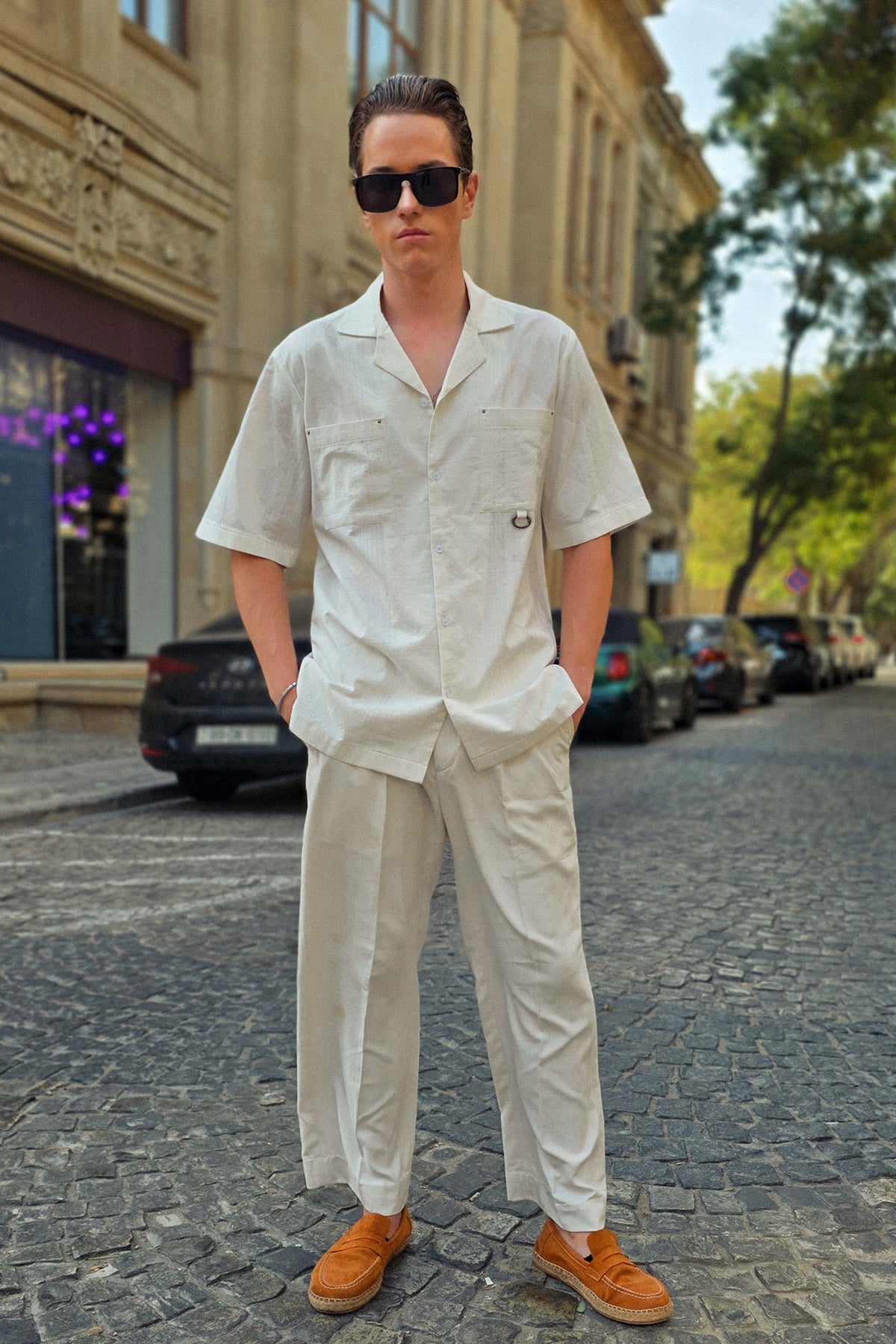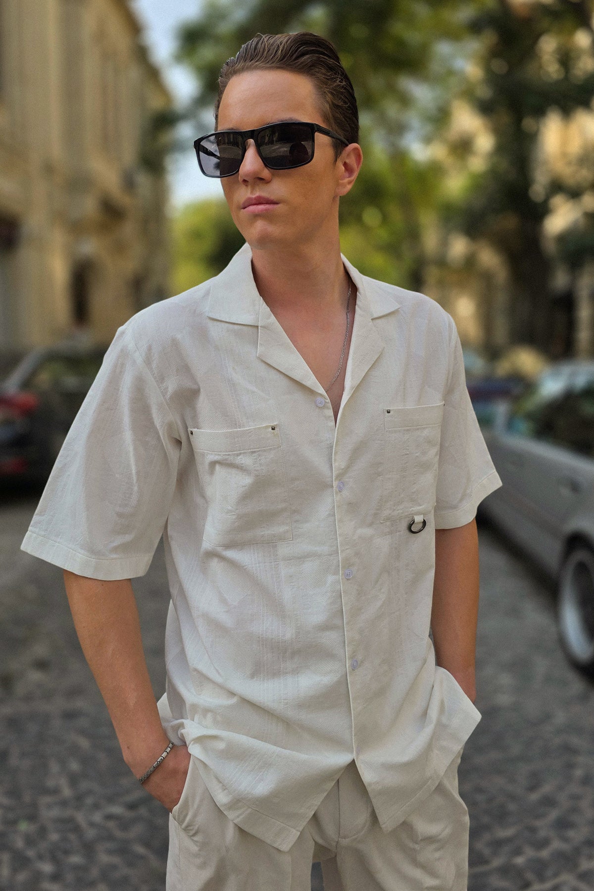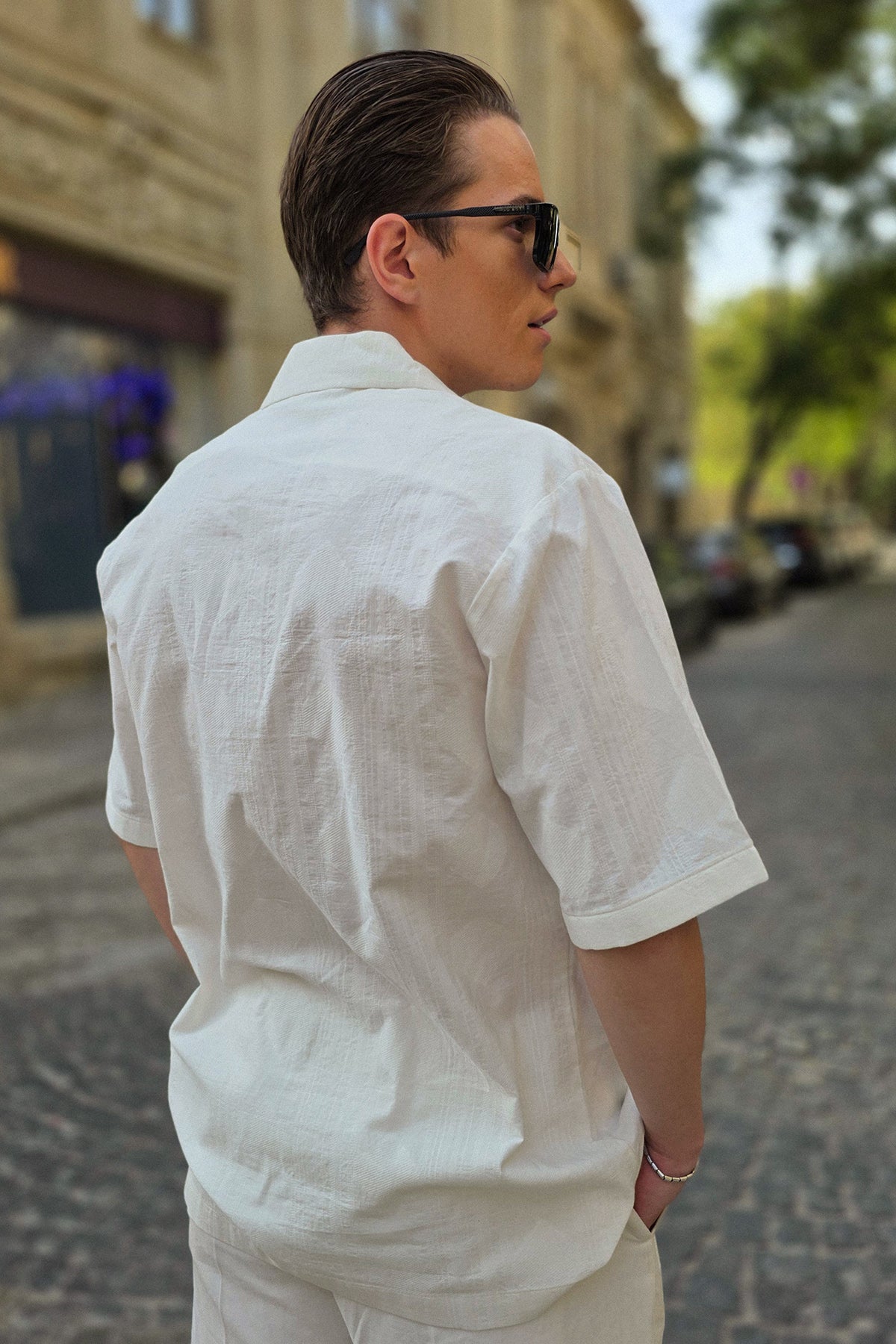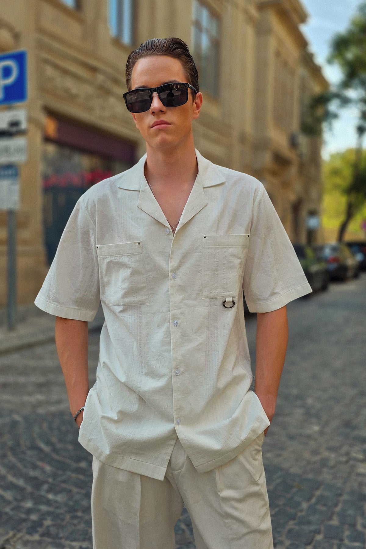 Jacquard Textured Shirt – Loose Fit Camp Collar
